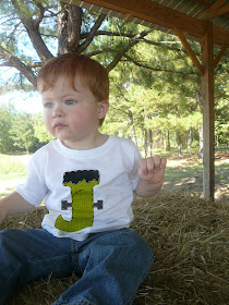 Went on a hayride to pick our pumpkin or as Jay called them "Pum-Boos"...